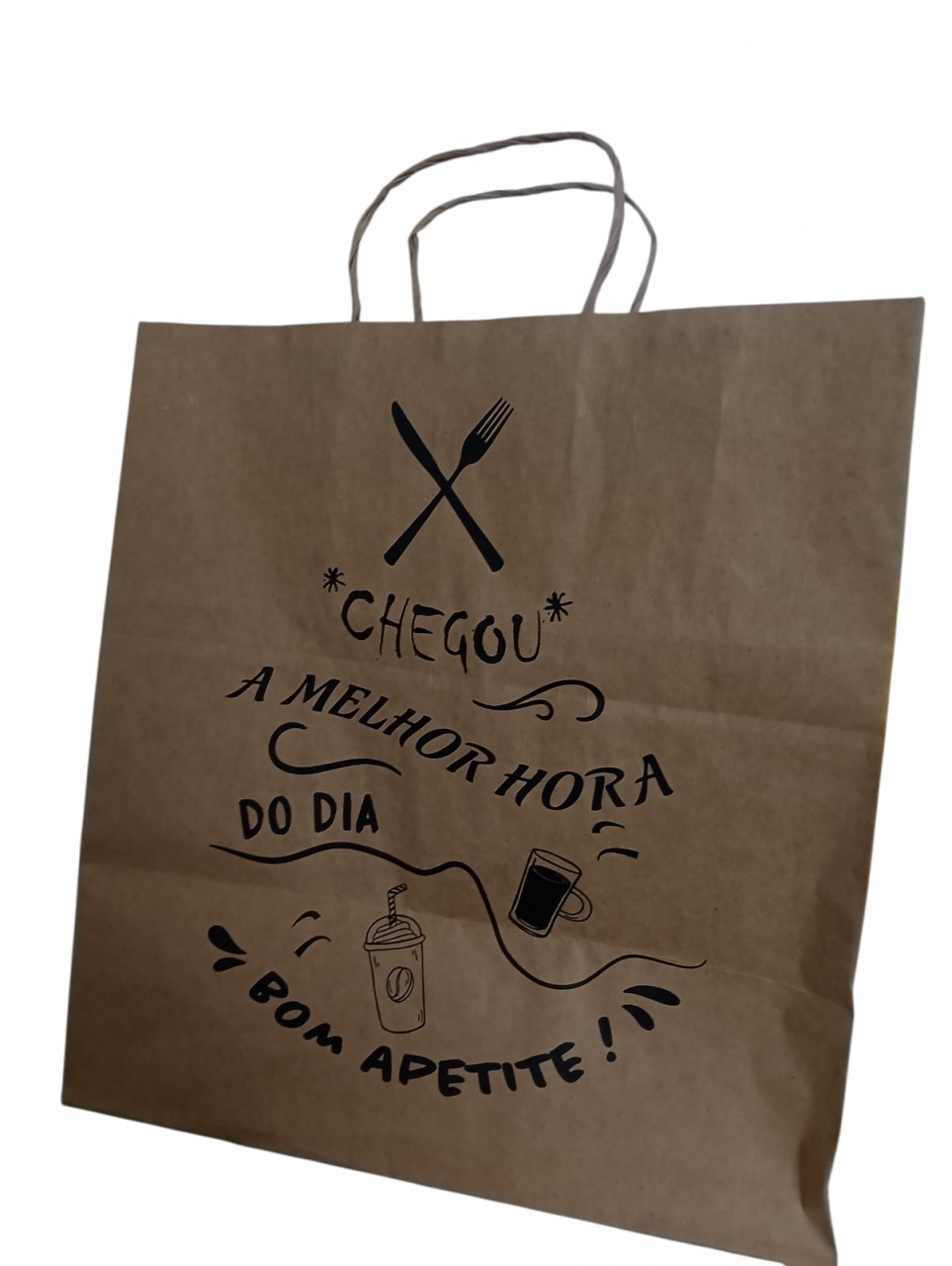 • Alta Resistência: Papel Kraft de excelente qualidade e alça torcida reforçada para garantir a segurança no transporte.