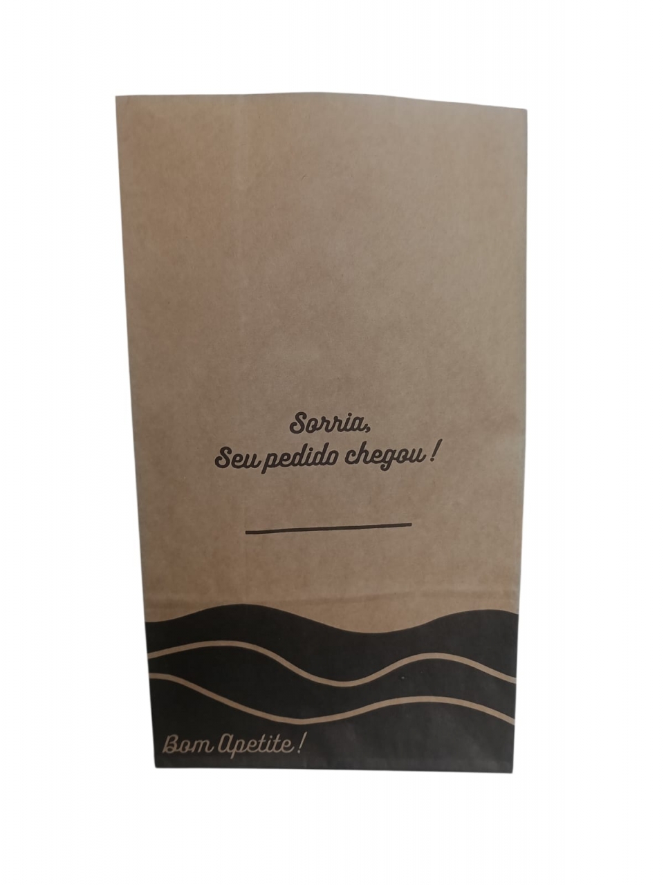 Kit com 100 Sacos de Papel Kraft Estampado para Delivery Fast Food - Tamanho P